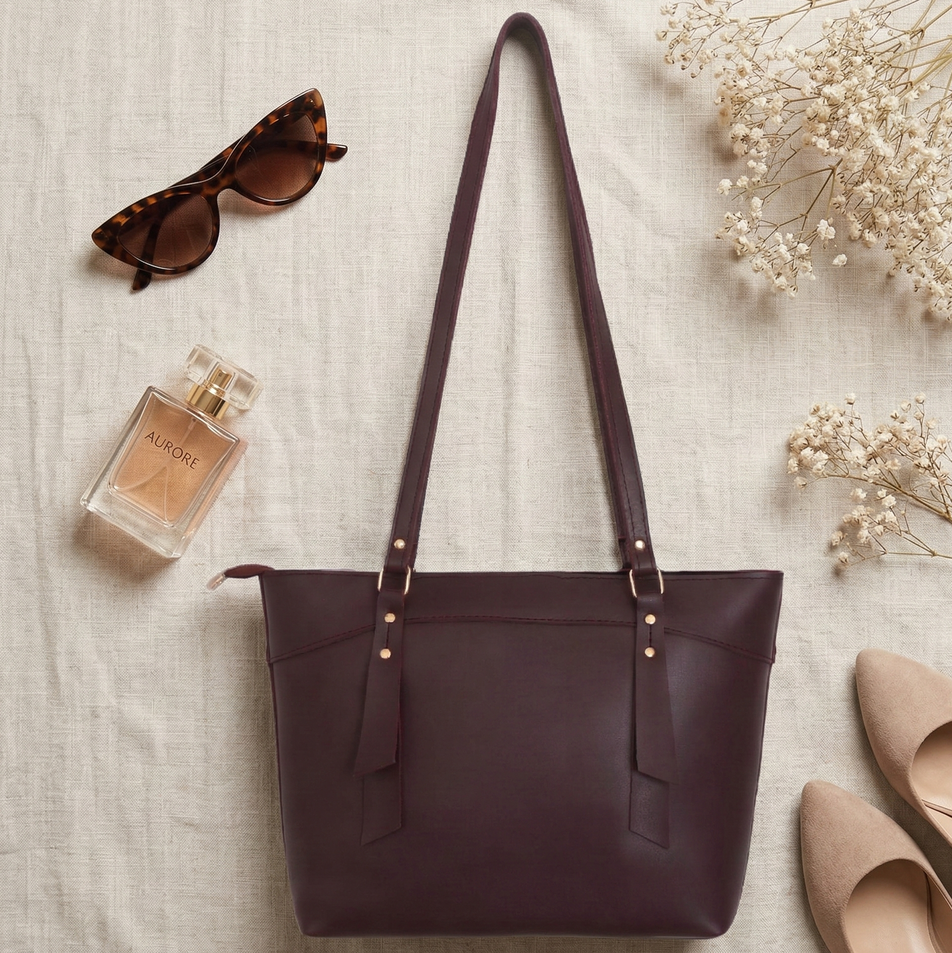 Soft blush-nude finish with minimal hardware