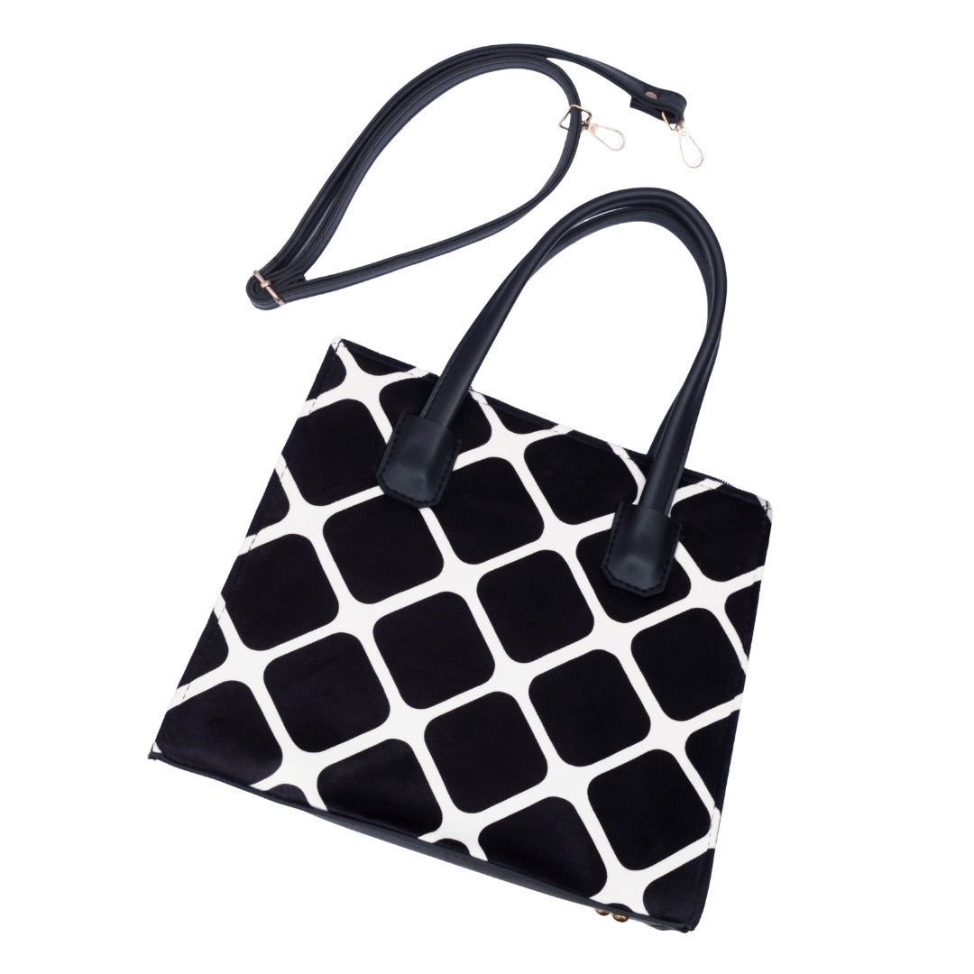 Bold yet timeless, the LYM VEMP Black Diamond Tote features a striking monochrome diamond pattern for a classy, versatile look. Whether paired with casual jeans or a formal outfit, this bag elevates any style effortlessly. Its sturdy structure and spacious interior make it as practical as it is stylish.